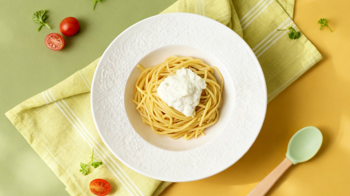 Spaghetti, processed cheese, cream
