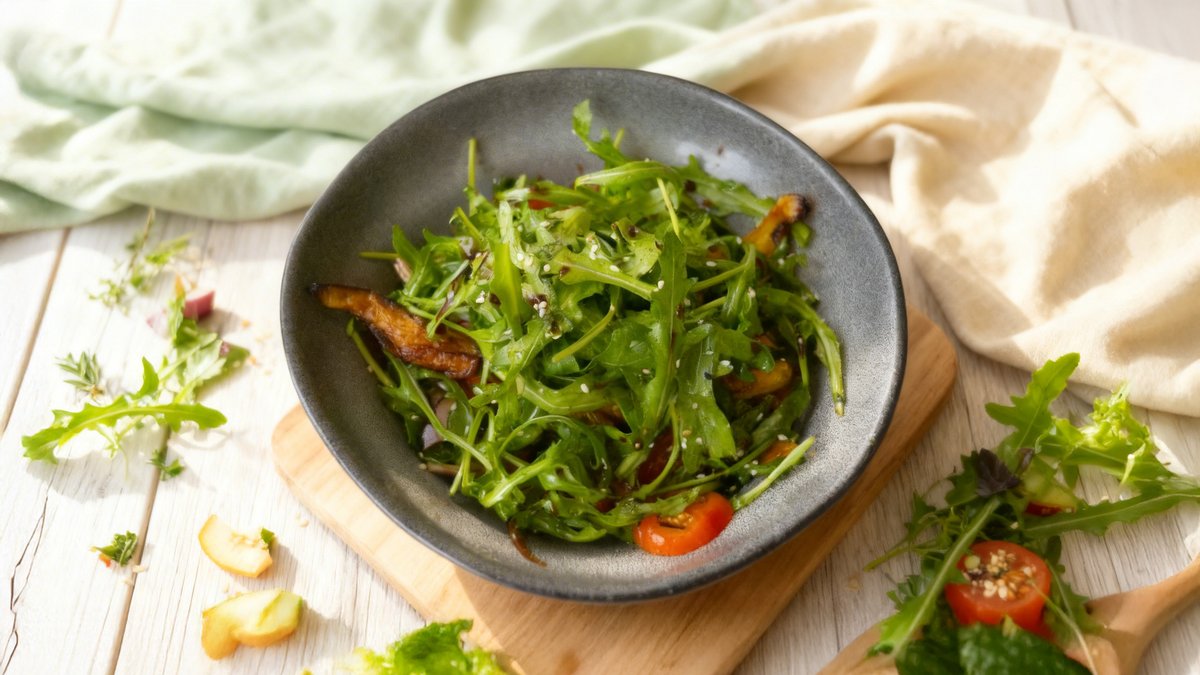 Crepes, spinach, garlic, lettuce, arugula, lemon, balsamic cream sauce, fresh salmon