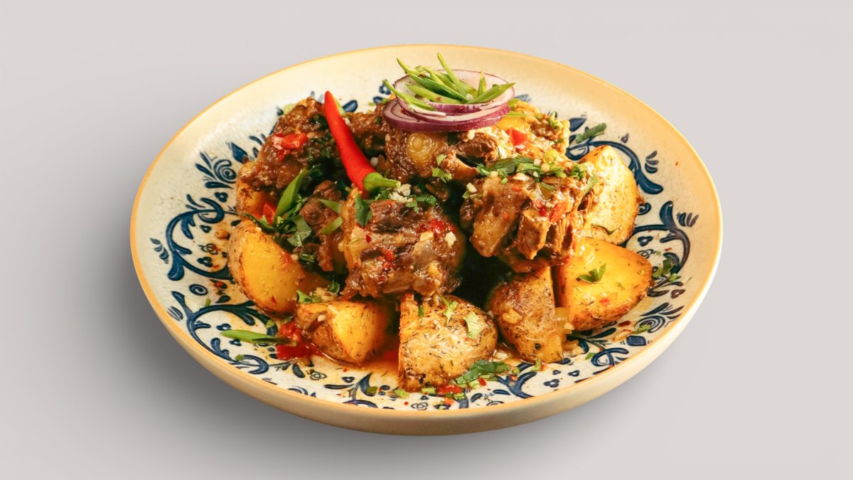 Традиционное блюдо восточной кухни с насыщенным вкусом, подаётся с румяным картофелем и пикантным соусом.