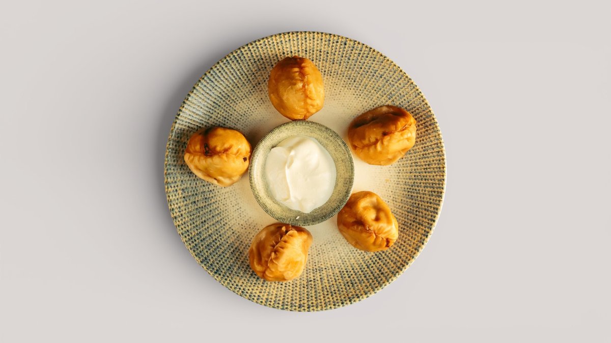 Традиционное блюдо с нежным тестом, жая из конины и казы, с насыщенным вкусом и аутентичной подачей.