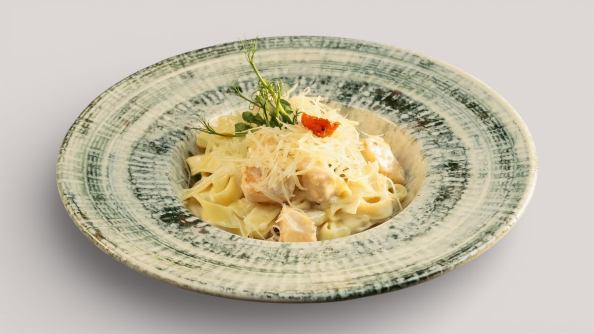 Лагман с куриным филе, сай, перцем лапиза и полугорьким перцем в насыщенном ароматном соусе.