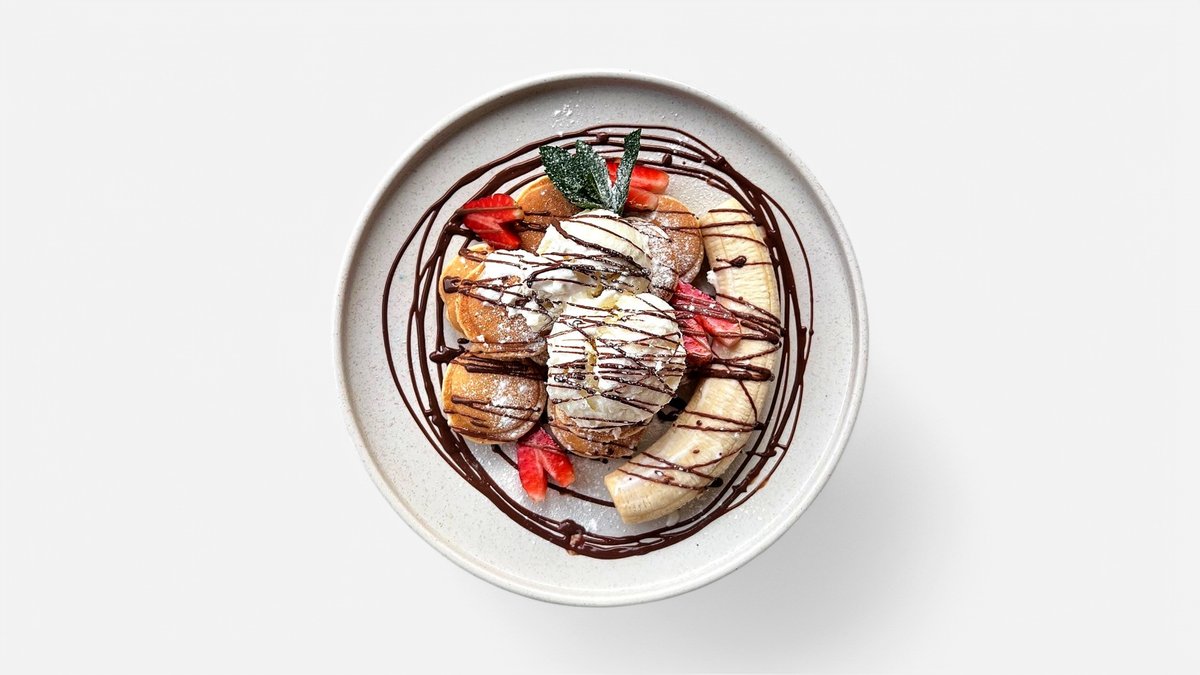 ΠΠ΅ΠΆΠ½ΡΠ΅ ΠΏΠ°Π½ΠΊΠ΅ΠΉΠΊΠΈ Ρ Π±Π°Π½Π°Π½ΠΎΠ²ΠΎΠΉ Π½Π°ΡΠΈΠ½ΠΊΠΎΠΉ, ΡΠ΅Π΄ΡΠΎ ΡΠΊΡΠ°ΡΠ΅Π½Π½ΡΡ ΡΠ²Π΅ΠΆΠΈΠΌΠΈ ΡΡΡΠΊΡΠ°ΠΌΠΈ ΠΈ Π°ΠΏΠΏΠ΅ΡΠΈΡΠ½ΠΎΠΉ ΡΠΎΠΊΠΎΠ»Π°Π΄Π½ΠΎΠΉ ΠΏΠΎΠ»ΠΈΠ²ΠΊΠΎΠΉ