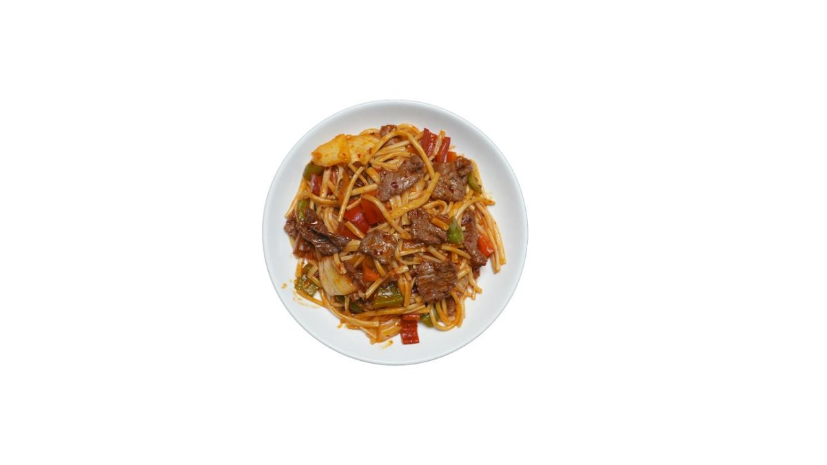 Лагманное тесто, говядина, полугорький перец, древесные грибы, шампиньоны, фрикадельки, фунчоза