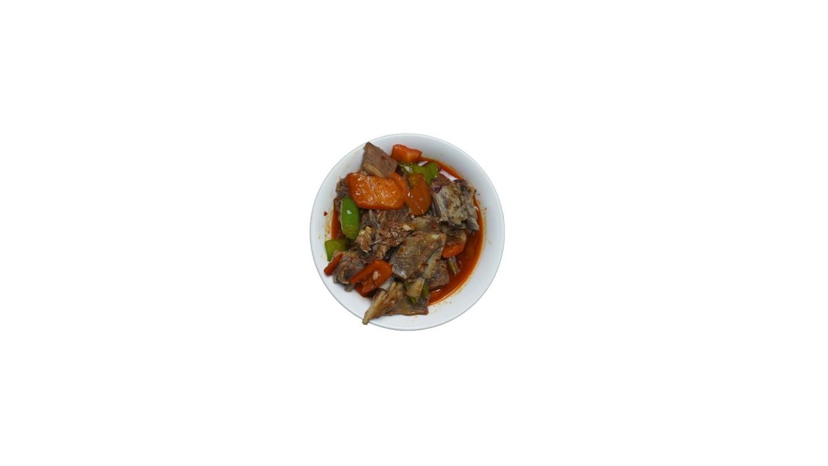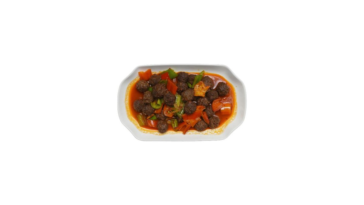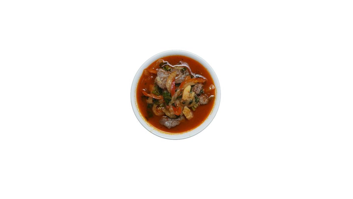Рис, подлива из мелкой нарезки говядины, полугорького перца, бясая и сельдерея