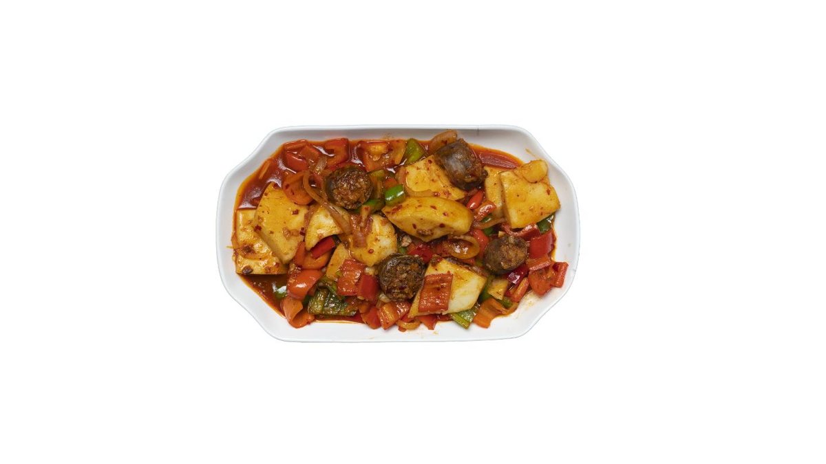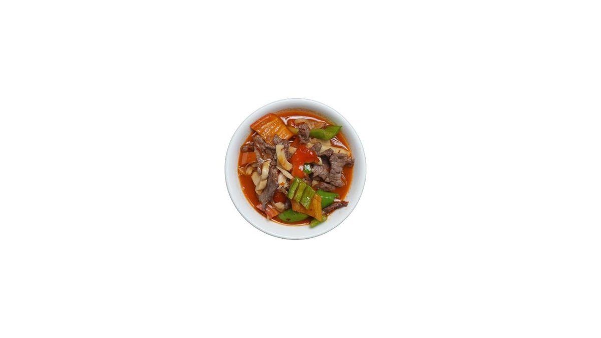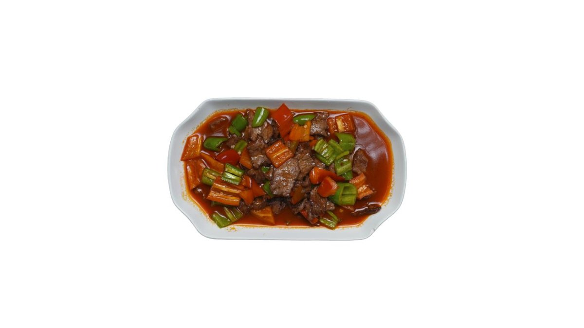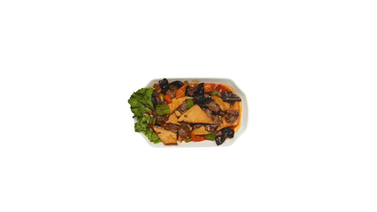 Говядина, тофу, полугорький перец, древесные грибы, специи