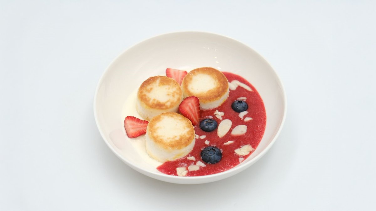 Сырники с соусом из клубники и свежими ягодами