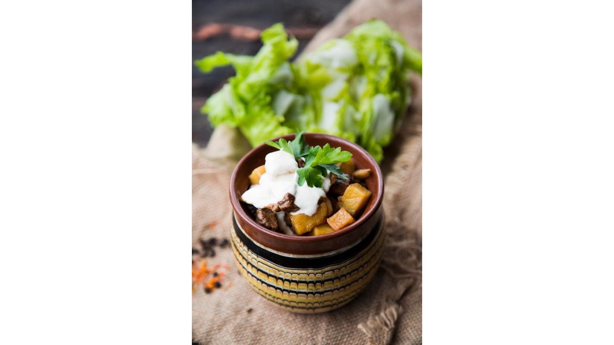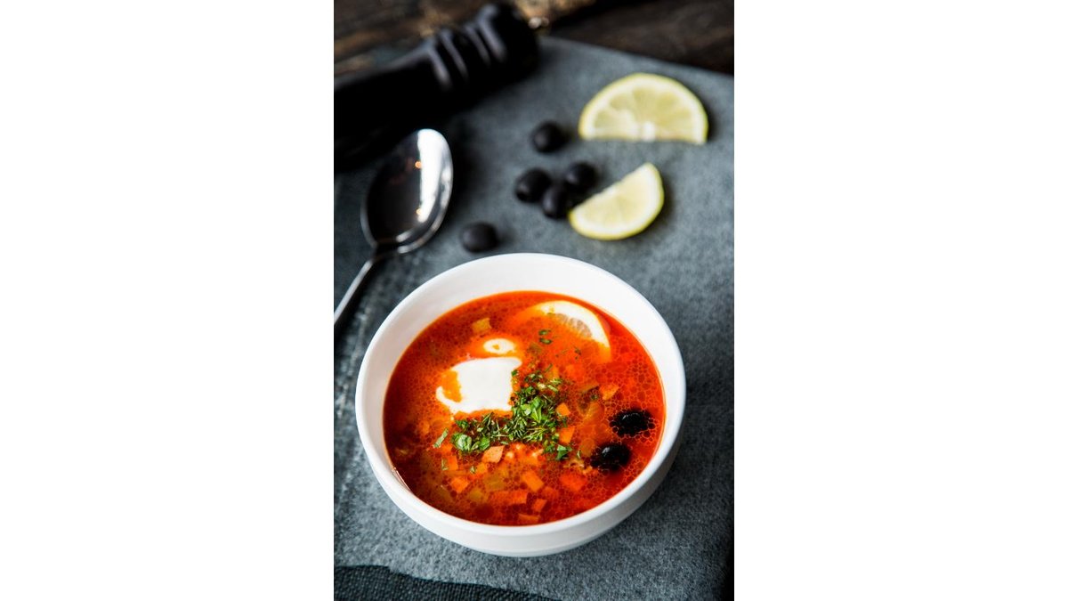 Говядина, капуста, свекла, морковь, лук, зелень, сметана