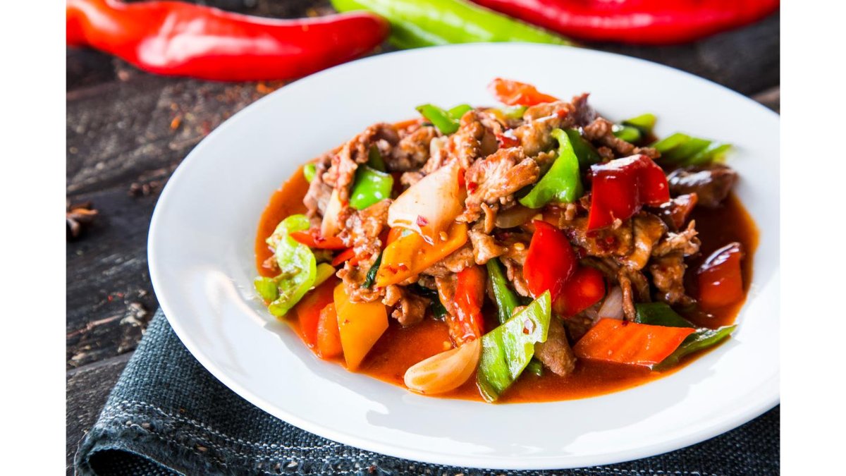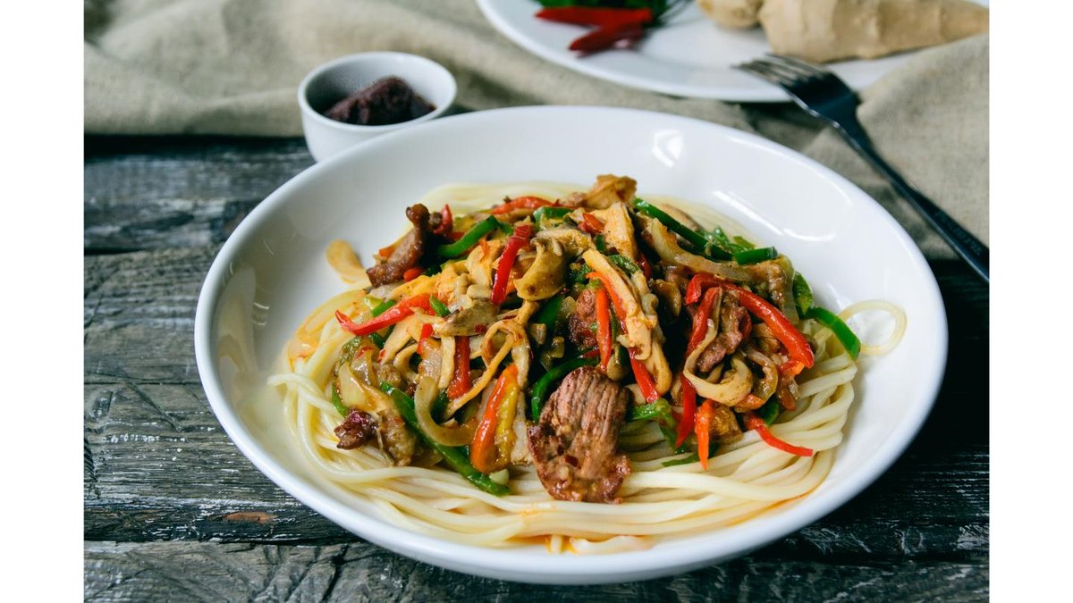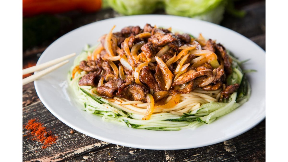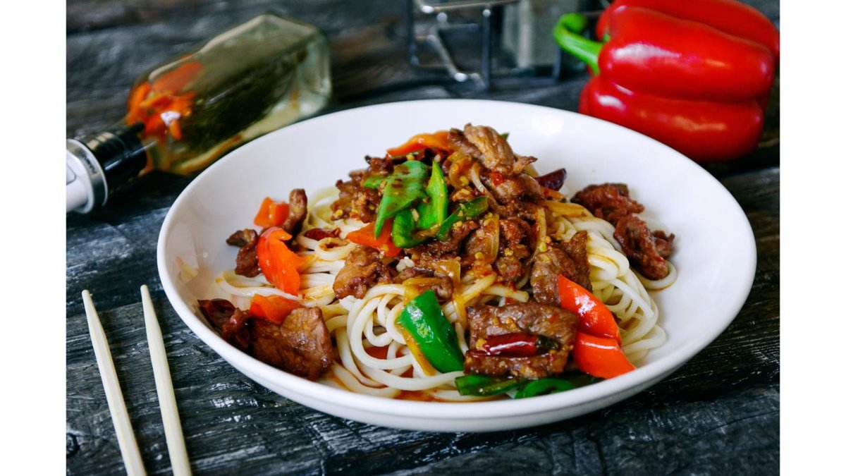 Лагманное тесто, полугорький перец, говядина