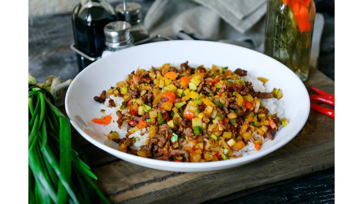 Говядина, суйру, сәй, рис