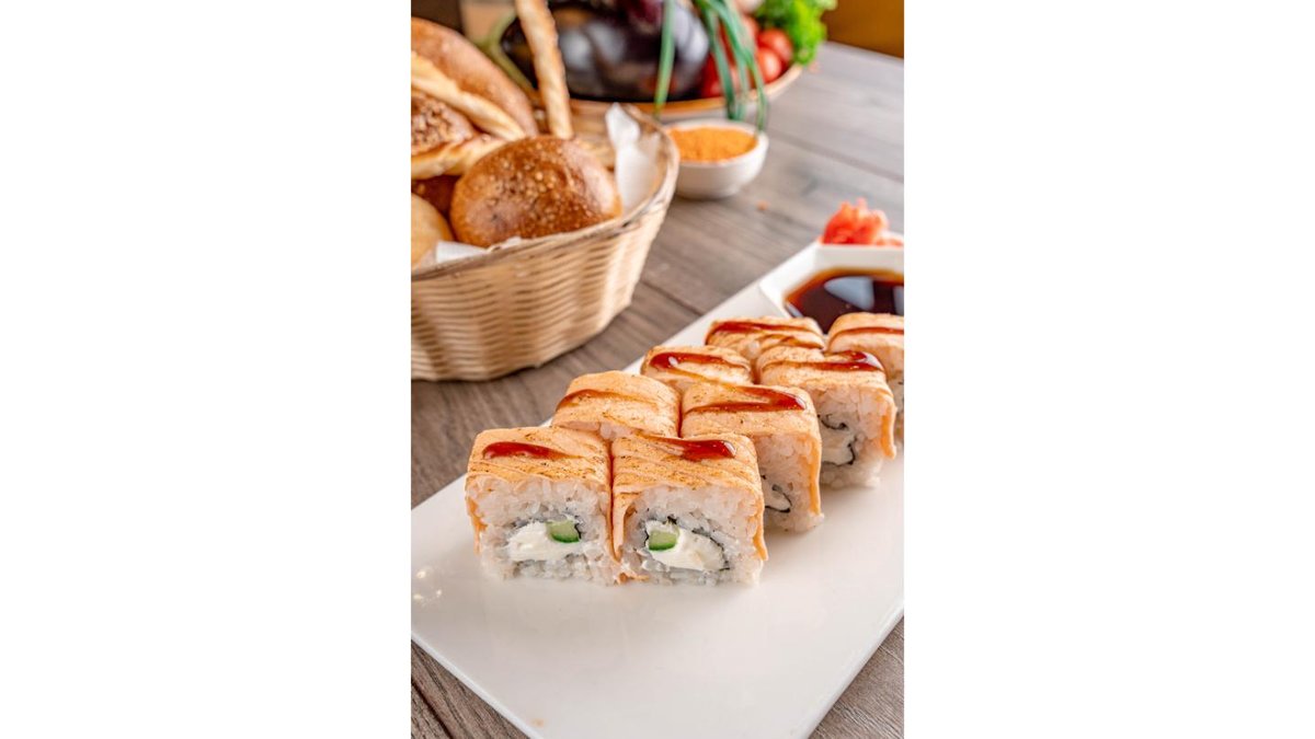 Рис, нори, лосось, угорь, сыр креметте, кляр