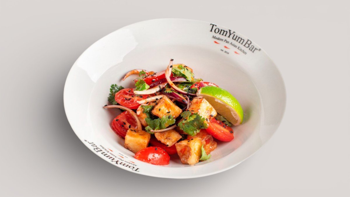Вегетарианский вариант нашего знаменитого TomYum. Суп на основе овощного бульона с добавлением острой пасты TomYum, оригинальных трав, специй и пряностей Таиланда. В составе: помидоры черри, ростки маш, петсай, стручковая фасоль и шампиньоны, лайм, кинза и кокосовое молоко. Подается с порцией пропаренного риса