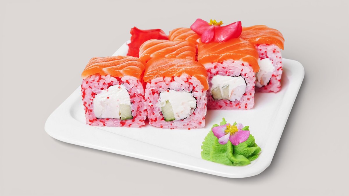 Лосось, огурец, креветка, сливочный сыр и икра масаго