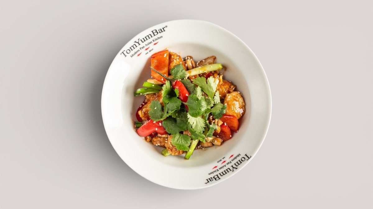 Премиальная азиатская говядина в панировке и обжаренная во фритюре. Подаётся с обжаренными на WOKе овощами - стручковая фасоль, паприка, пекинская и цветная капуста, брокколи, ростки маш, красный лук – с оригинальным соусом Blackpepper*. Украшается зелёным луком и чёрным кунжутом.