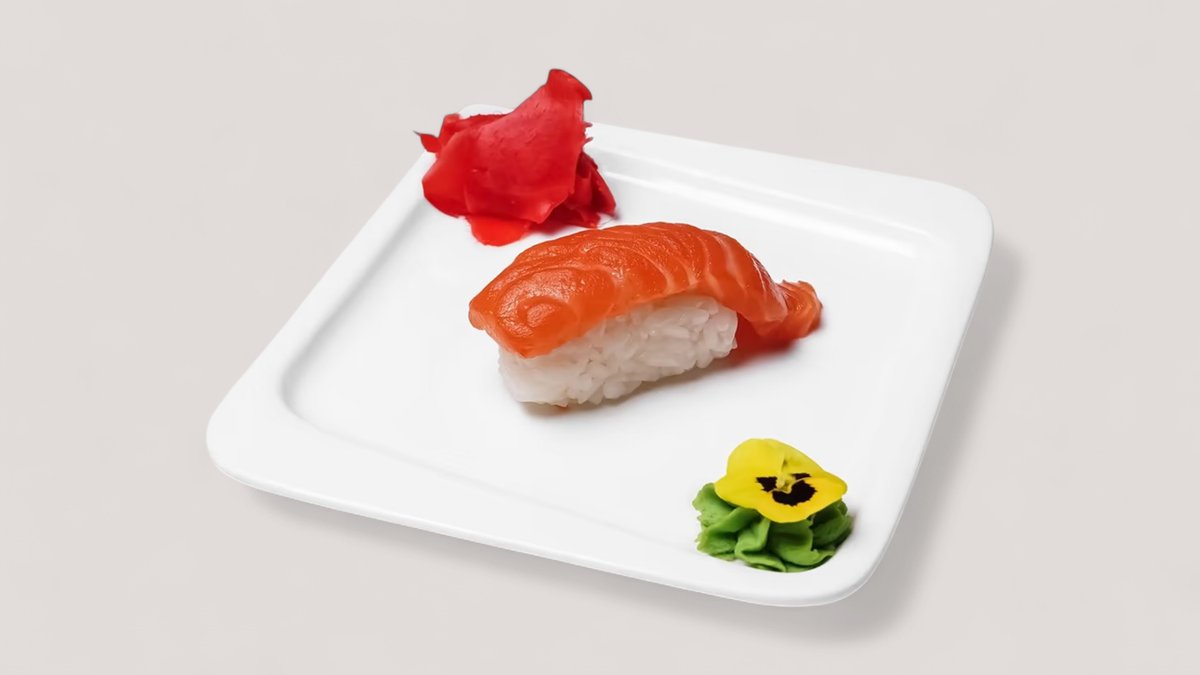Гавайская холодная закуска из свежей семги, спелого авокадо, хрустящего такуана, сочного ананаса и водорослей кайсо. Подается на подушке из риса и заправляется пикантным кисло-сладким соусом Никкей