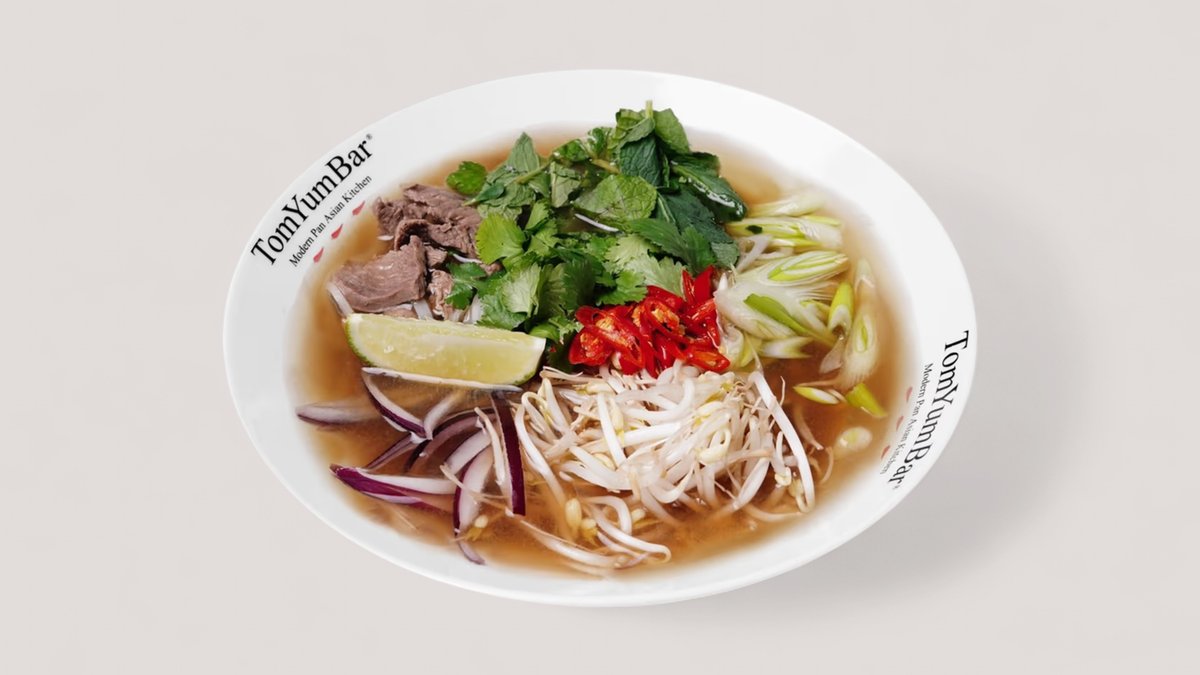 Tom Yum с премиальной говядиной на основе говяжьего бульона с добавлением острой пасты, оригинальных трав и пряностей