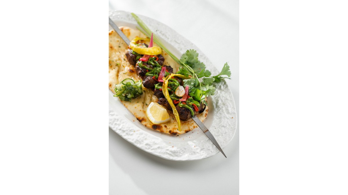 Обжаренная в хоспере вырезка конины, подается на лепешке пратха с огурцами ким-чи, кинзой и лимоном