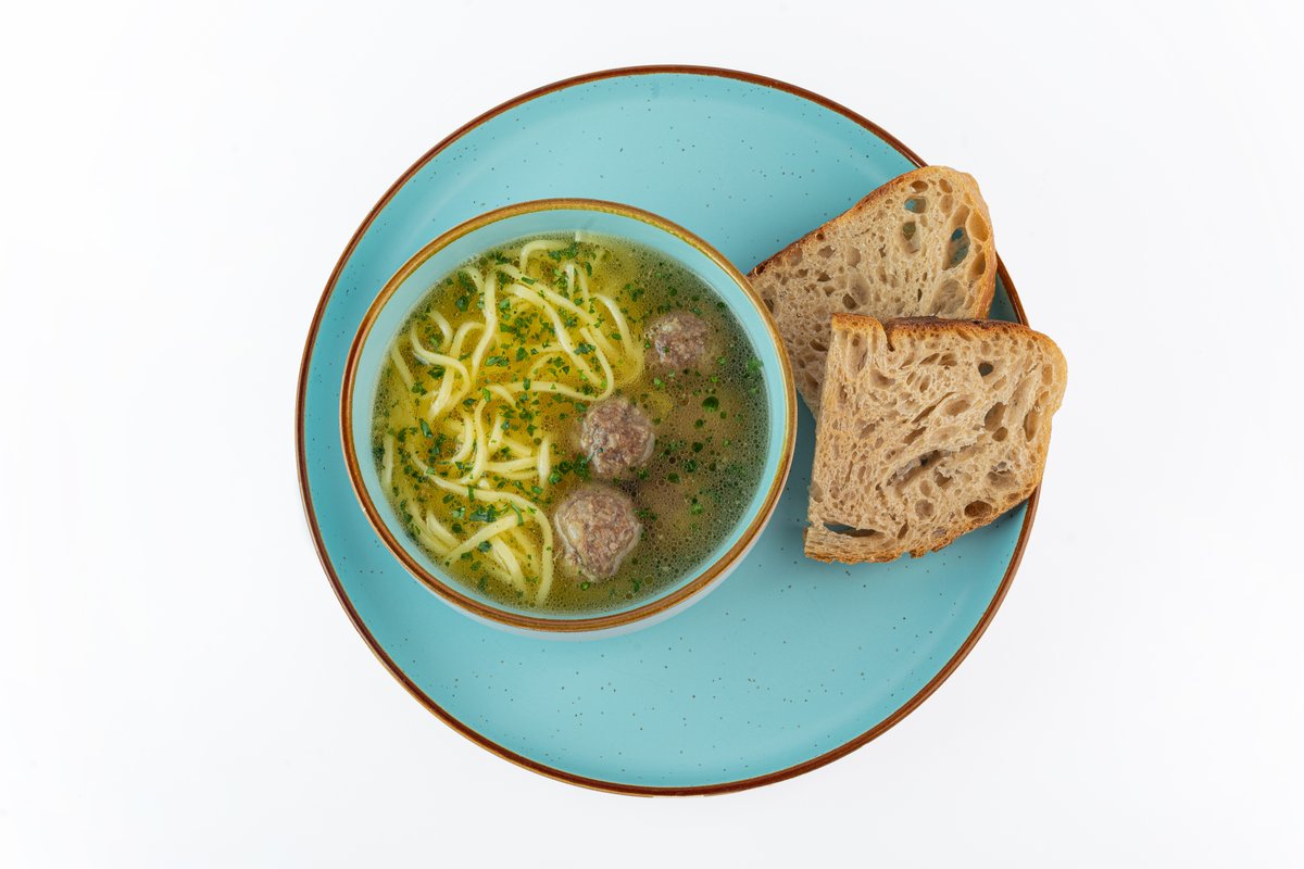 Говяжьи фрикадельки с бульоном, лапшой и зеленью