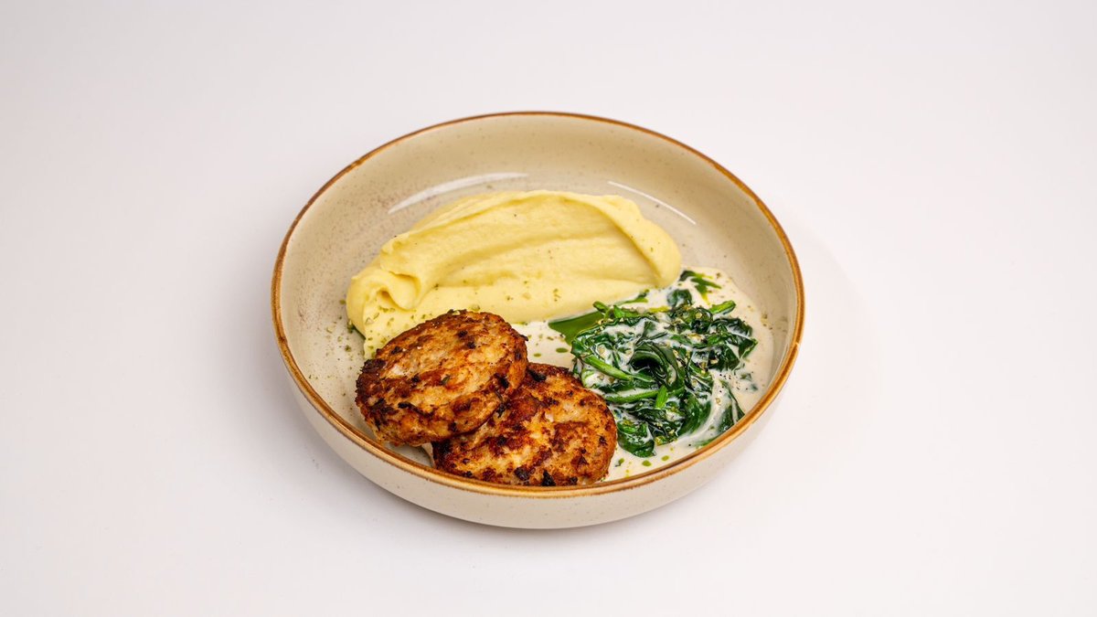 Котлеты из индейки со шпинатом в сливках и картофельным пюре