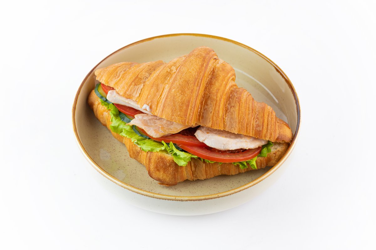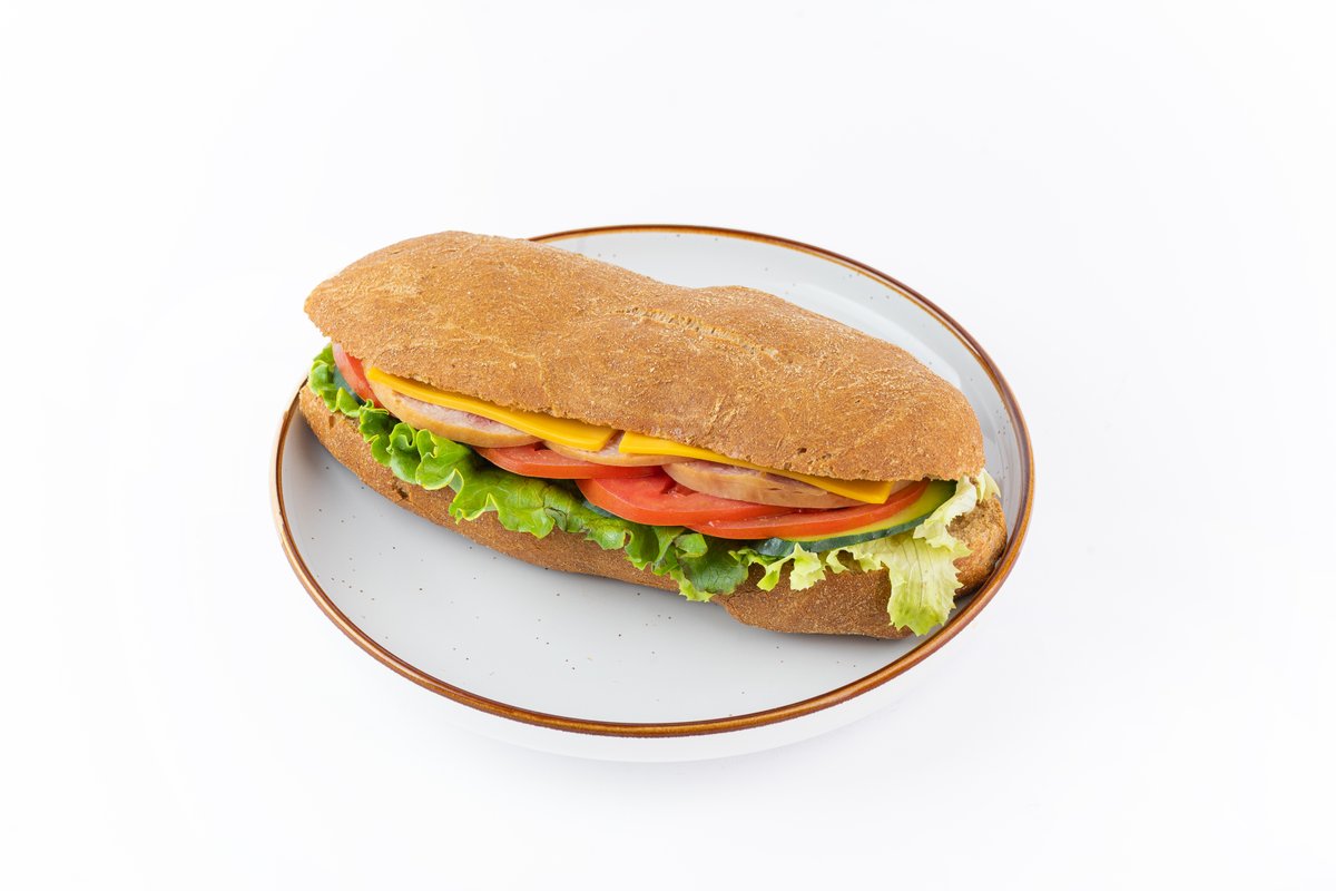 Чибатта с говяжьей ветчиной и сыром, овощами и чесночным соусом