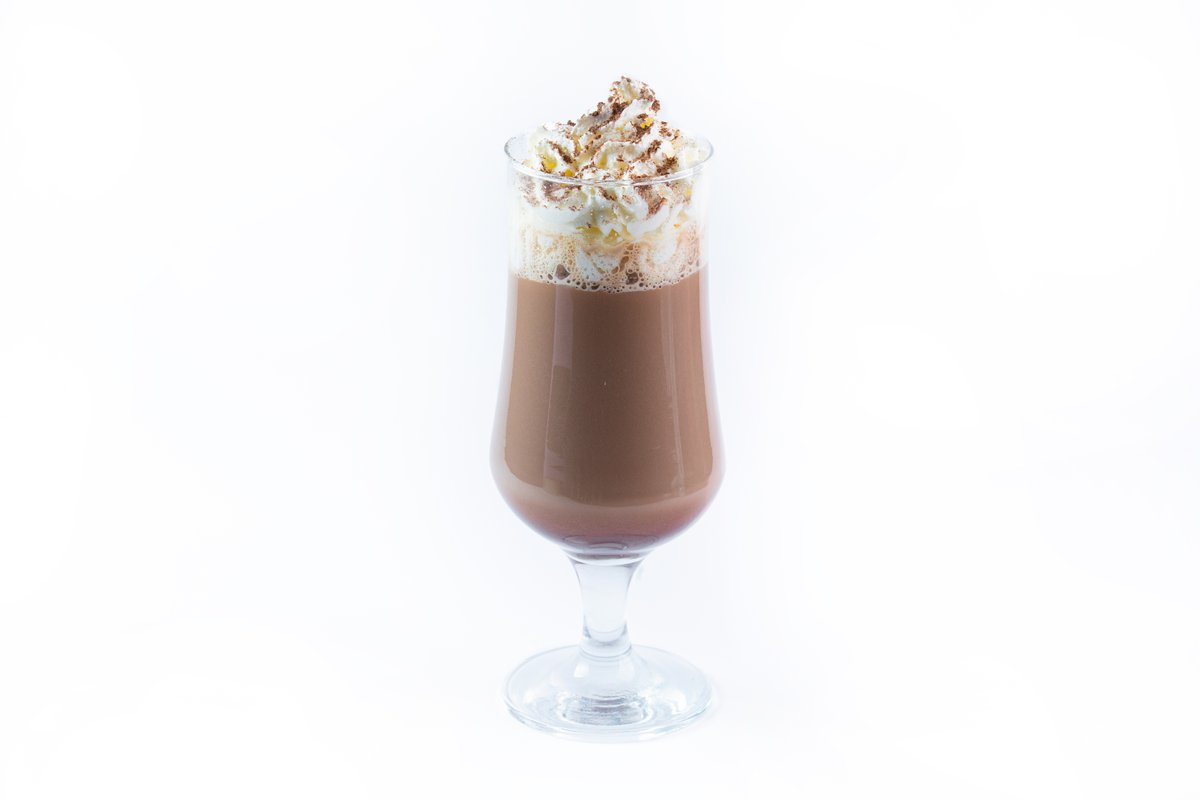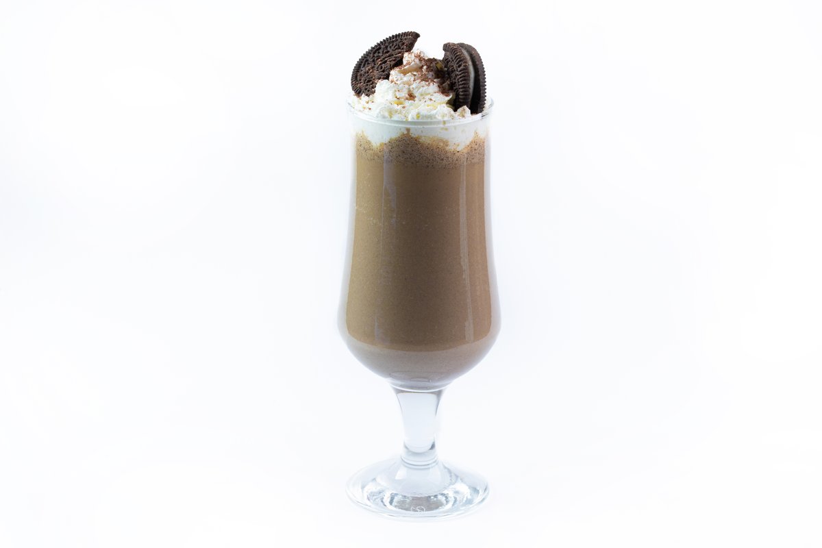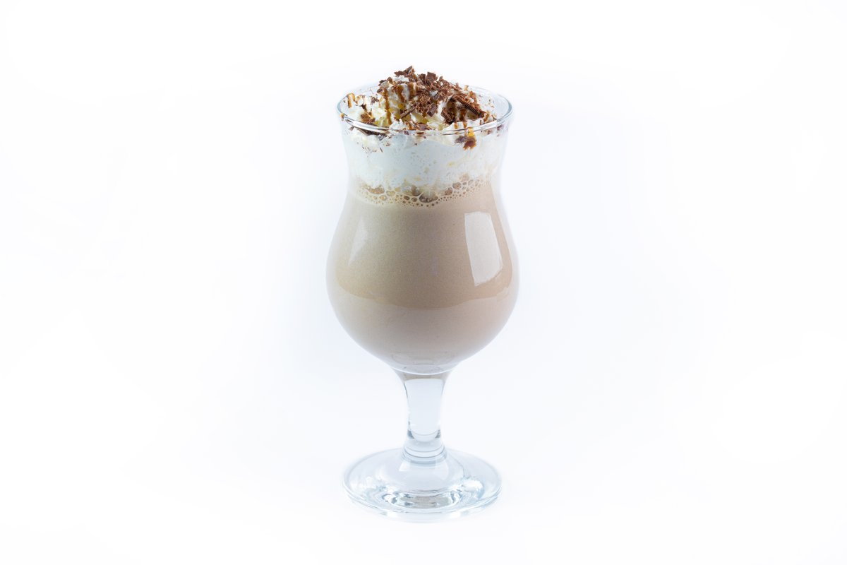 Охлажденный коктейль на молочной основе, с добавлением шоколадного топпинга и ванильного порошка. Украшается взбитыми сливками и плиткой шоколада. Объемы 0.4