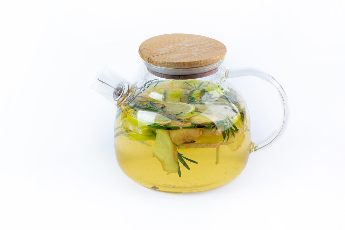 Авторский чай на основе зеленого чая. С добавлением корня имбиря, розмарина, меда, яблока и лайма. Объемы 0.4