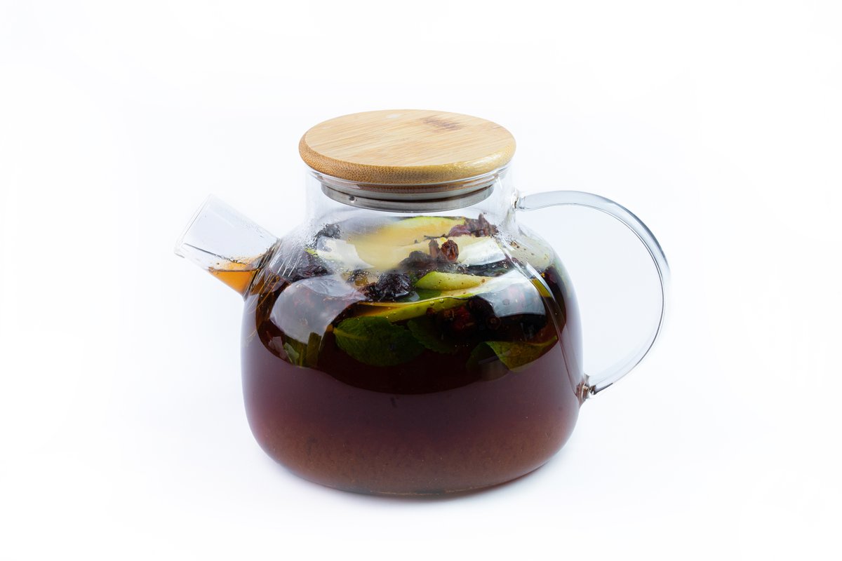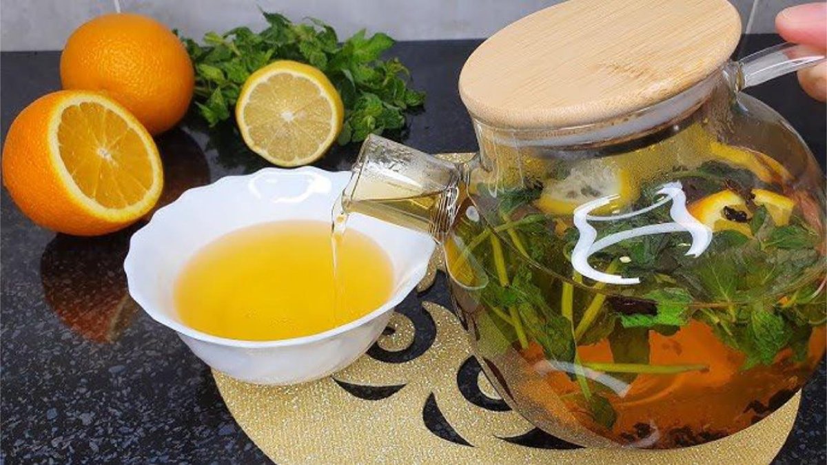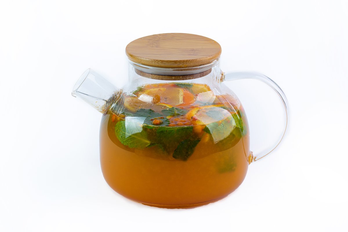 Авторский чай на основе черного и зеленого чаев. С добавлением лимона, апельсина, мяты и меда. Объемы 0.4