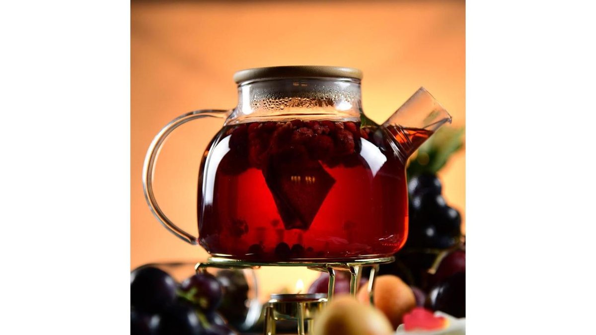 Авторский чай на основе черного чая, с добавлением пюре из малины, пюре из клубники, свежей мяты и сиропа карамель. Украшается ягодами малины и смородины. Объемы 0.4