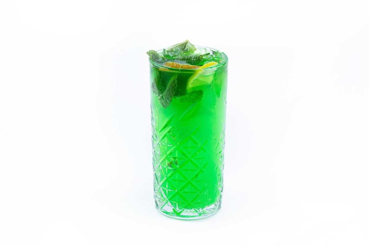 На основе газированной воды, с добавлением лайма, сахара и свежей мяты. Украшается веточкой мяты и слайсом лайма. Обьемы 0.4