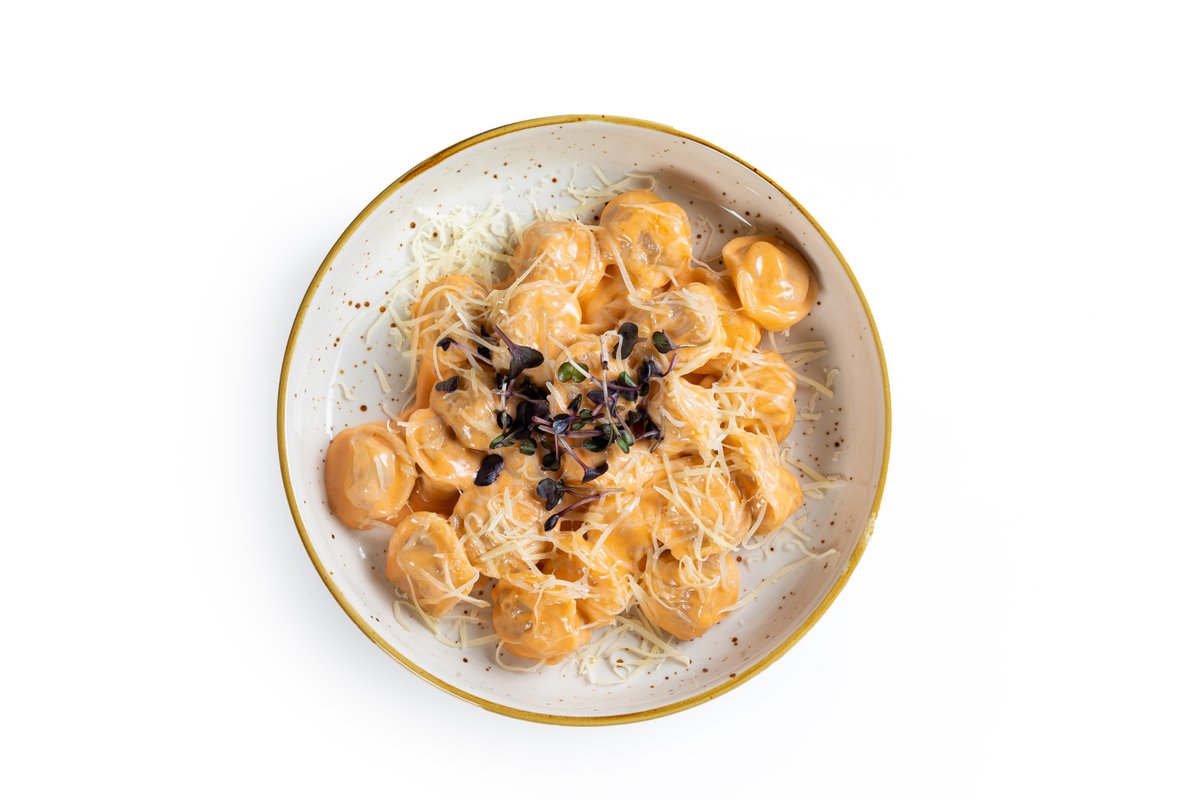 Пельмени, сливки 33%, кетчуп, сыр пармезан
