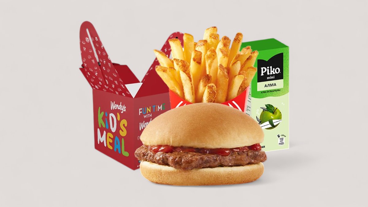 1. Гамбургер 2. Маленькая картошка фри 3. Напиток на выбор 4. Соус 5. Раскраска
