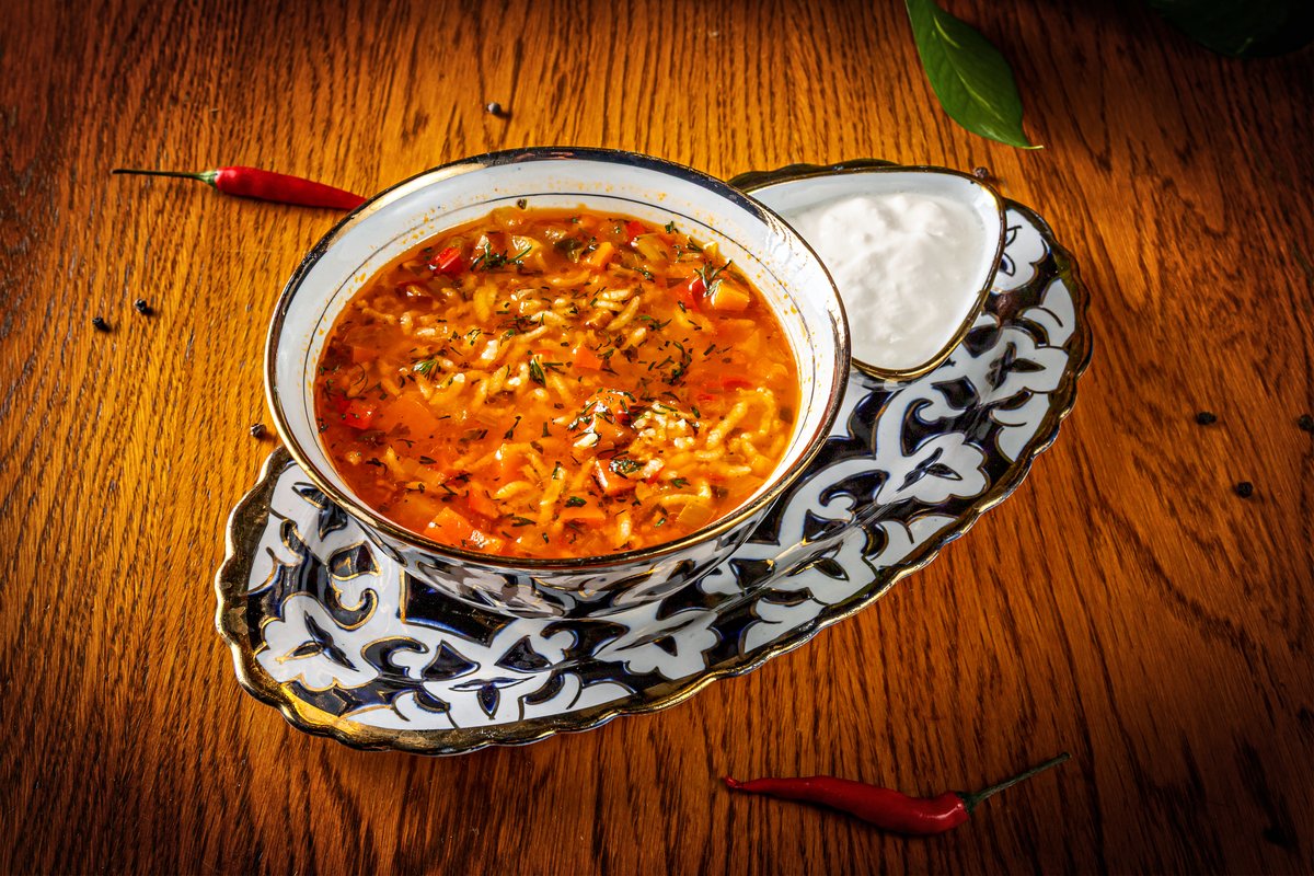 сытный и ароматный узбекский суп приготовленный из нежной говядины,жугерек свежих овощей и зелени. Подается с густым йогуртом который прекрасно дополняет насыщенный вкус блюда. 400гр