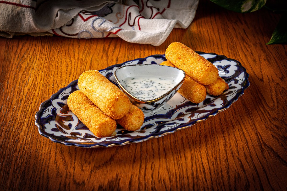 жаренные пельмешки из говядины,дополнительно подается белый соус на основе кислого йогурта