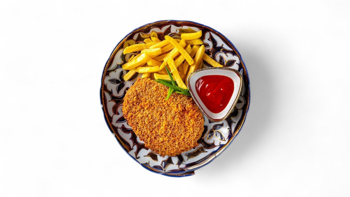 Отварное куриное филе в сочетании с овощами и жареным картофелем Пай.