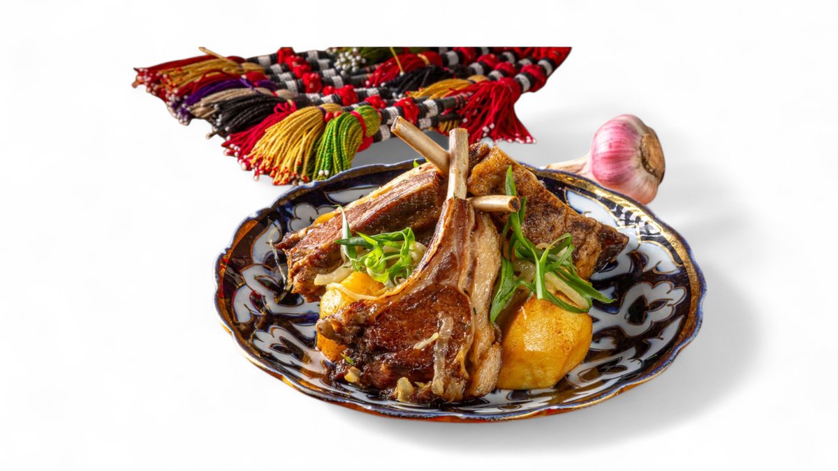 Знаменитый куырдак из говядины лука и картофеля. В нашем рецепте еще добавляются ломтики говяжьего антрекота и бараньи ребрышки (семечки). Подается на горячей тыквенной либо томатной лепешке. 450 гр.