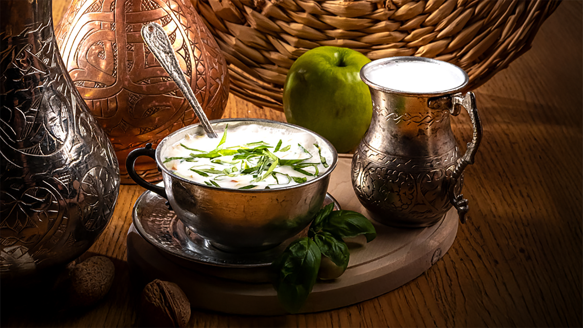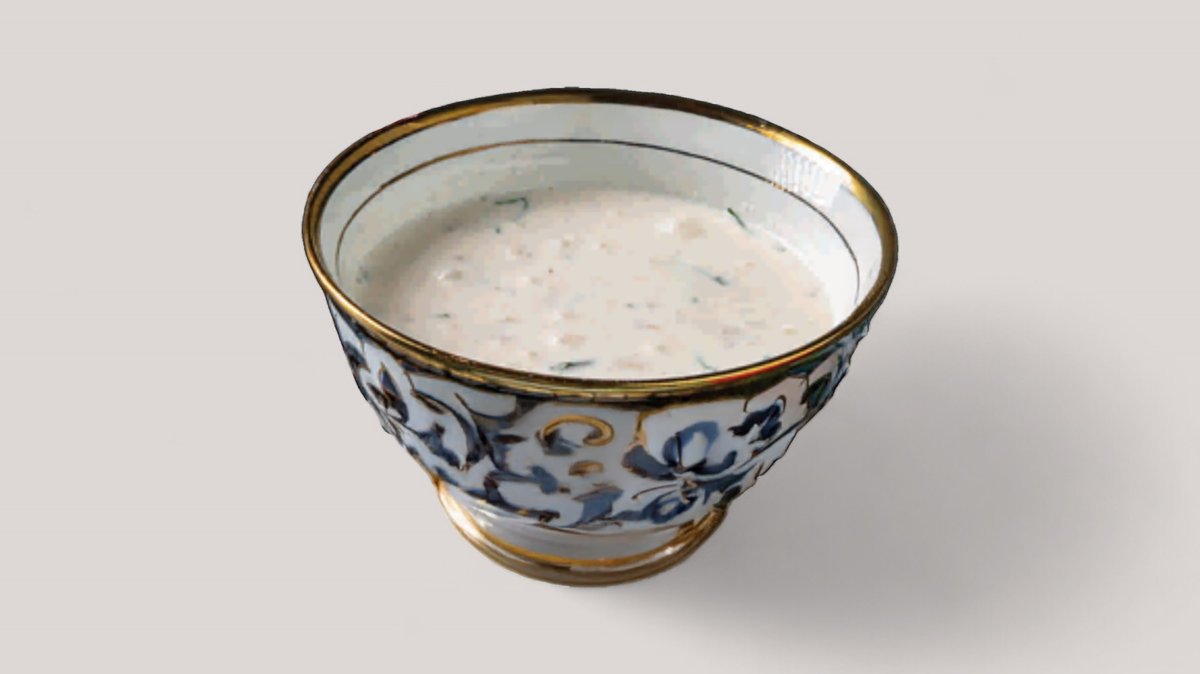 Освежающий летний суп, на основе которого — отварная кукуруза, белая фасоль и жүгірек, дополненные кефиром и ароматом северного базилика. Идеально для жаркого дня, сочетает в себе легкость и насыщенность вкусов.