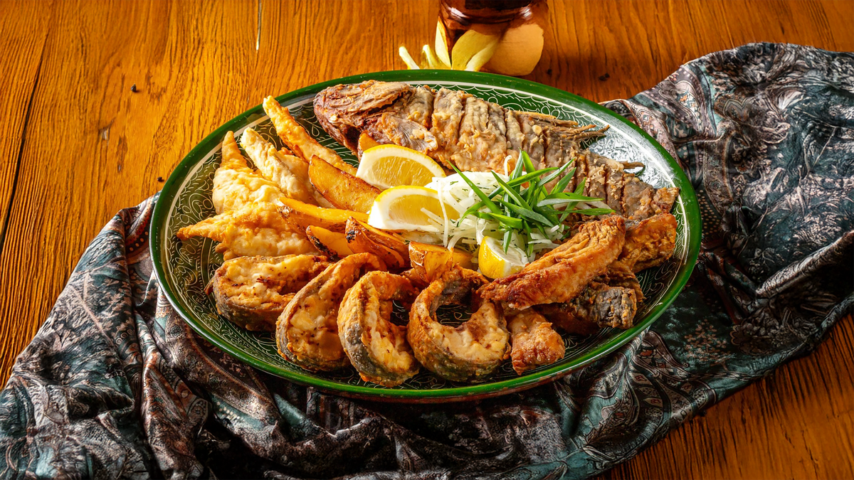 это сытное и ароматное блюдо сочетает в себе нежное филе осетрины и сазана,обжаренное в растительном масле . 950гр