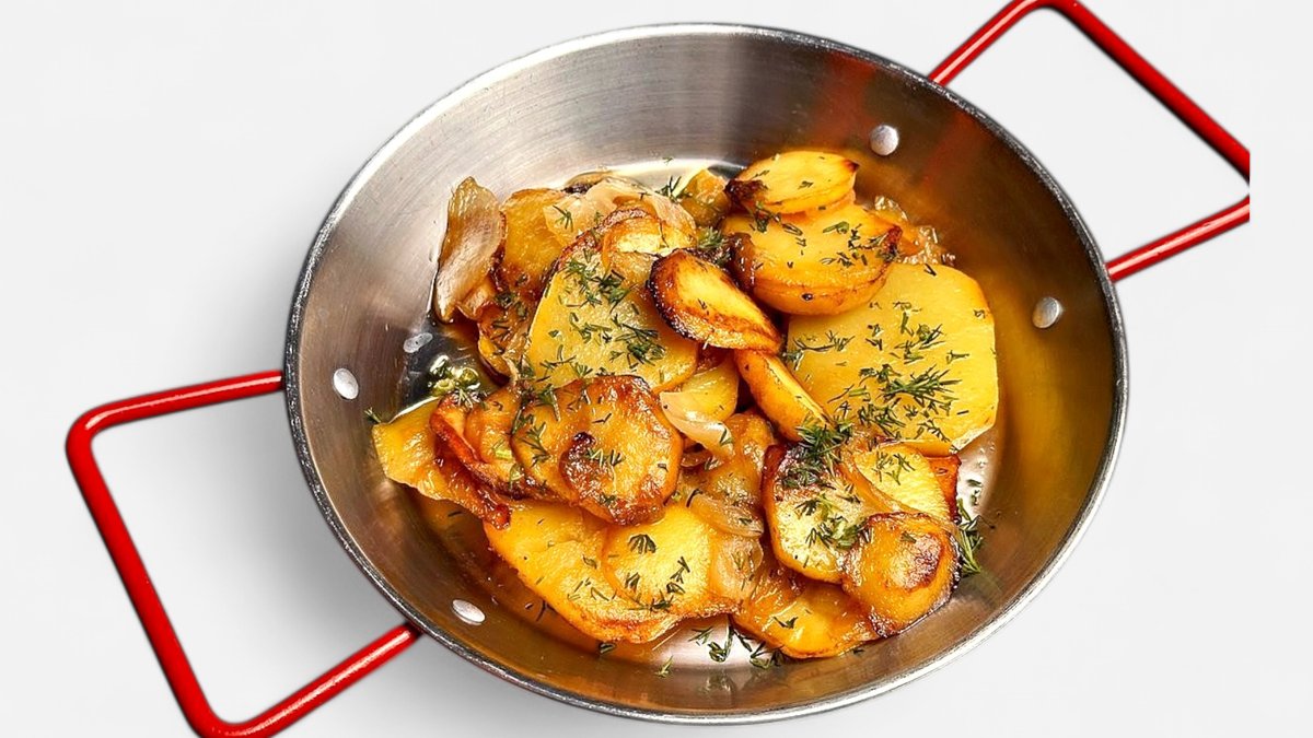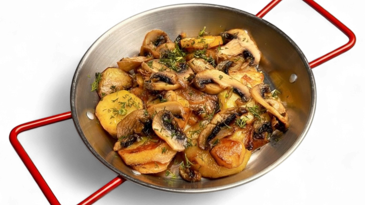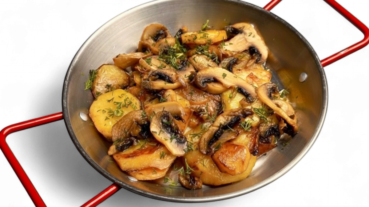 Жареный картофель по-домашнему с грибами и золотистым лучком