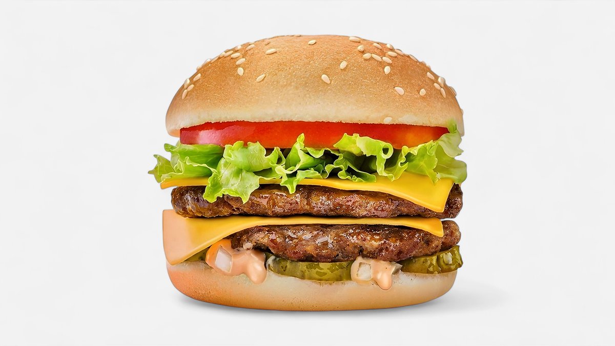 Нежная говяжья котлета, обжаренная до золотистой корочки, с расплавленным сыром, хрустящими свежими овощами и насыщенным соусом, заключённая в мягкую булочку с легким ароматом поджаренной корочки. Каждый укус — это феерия вкусов, которая не оставит равнодушным!