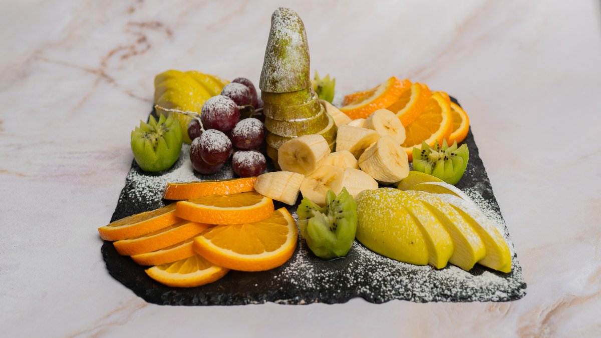 Ассорти из сезонных фруктов. НАПОЛНЕНИЕ МОЖЕТ ОТЛИЧАТЬСЯ ОТ ФОТО (в зависимости от времени года, уточняйте у администратора).