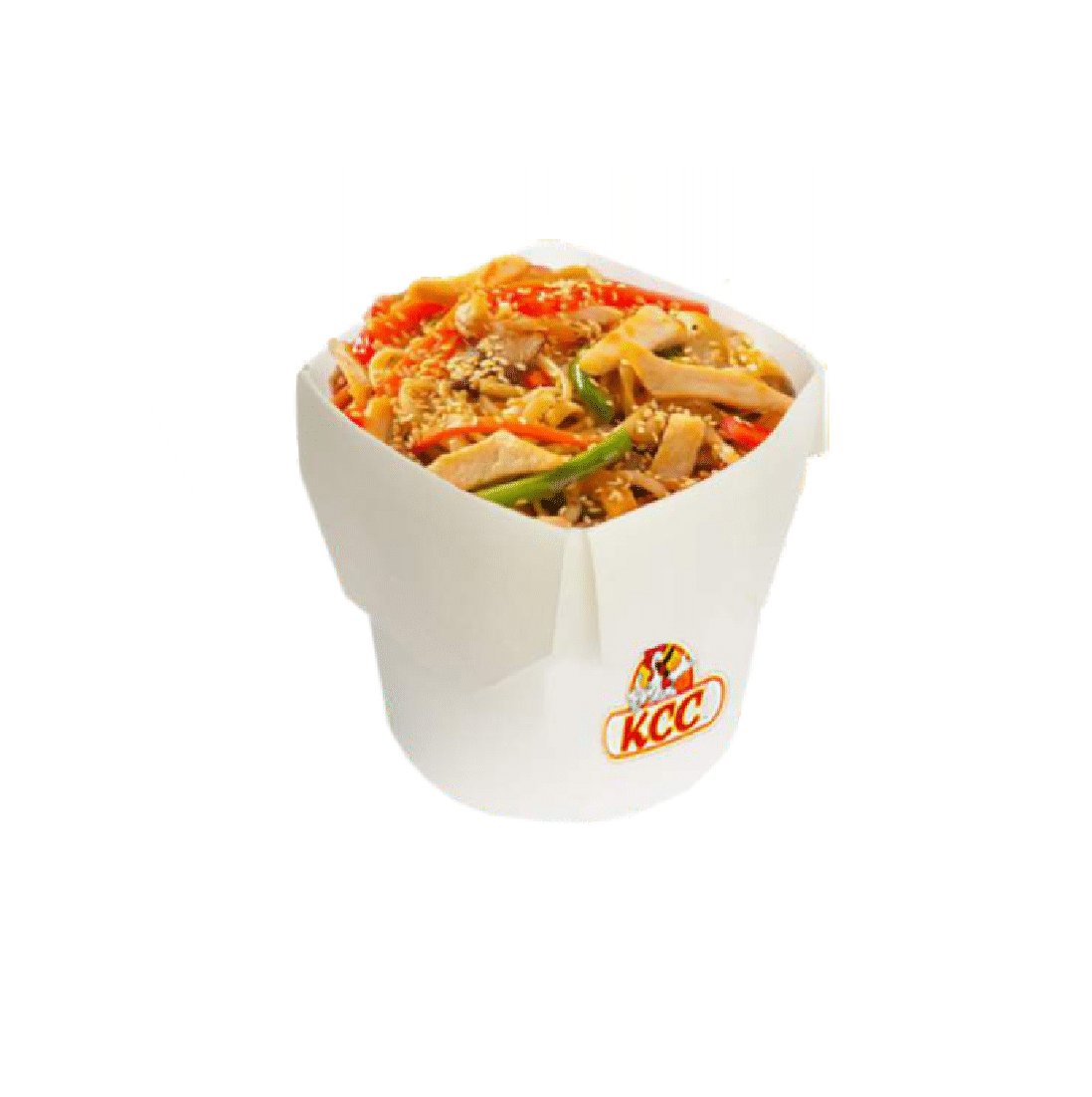 Пшеничная лапша с курицейв сочетании фирменного соуса "Чеддер Чиз", сыра Моцарелла, чеснока и кунжута.