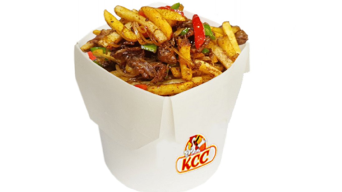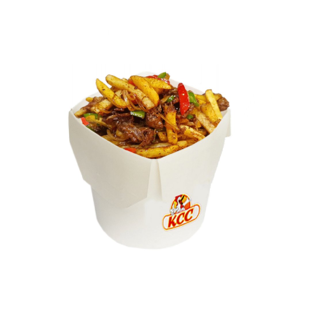 Картофель фри, сочное куриное филе обжаренное с овощами в сочетании сырного соуса, чили.