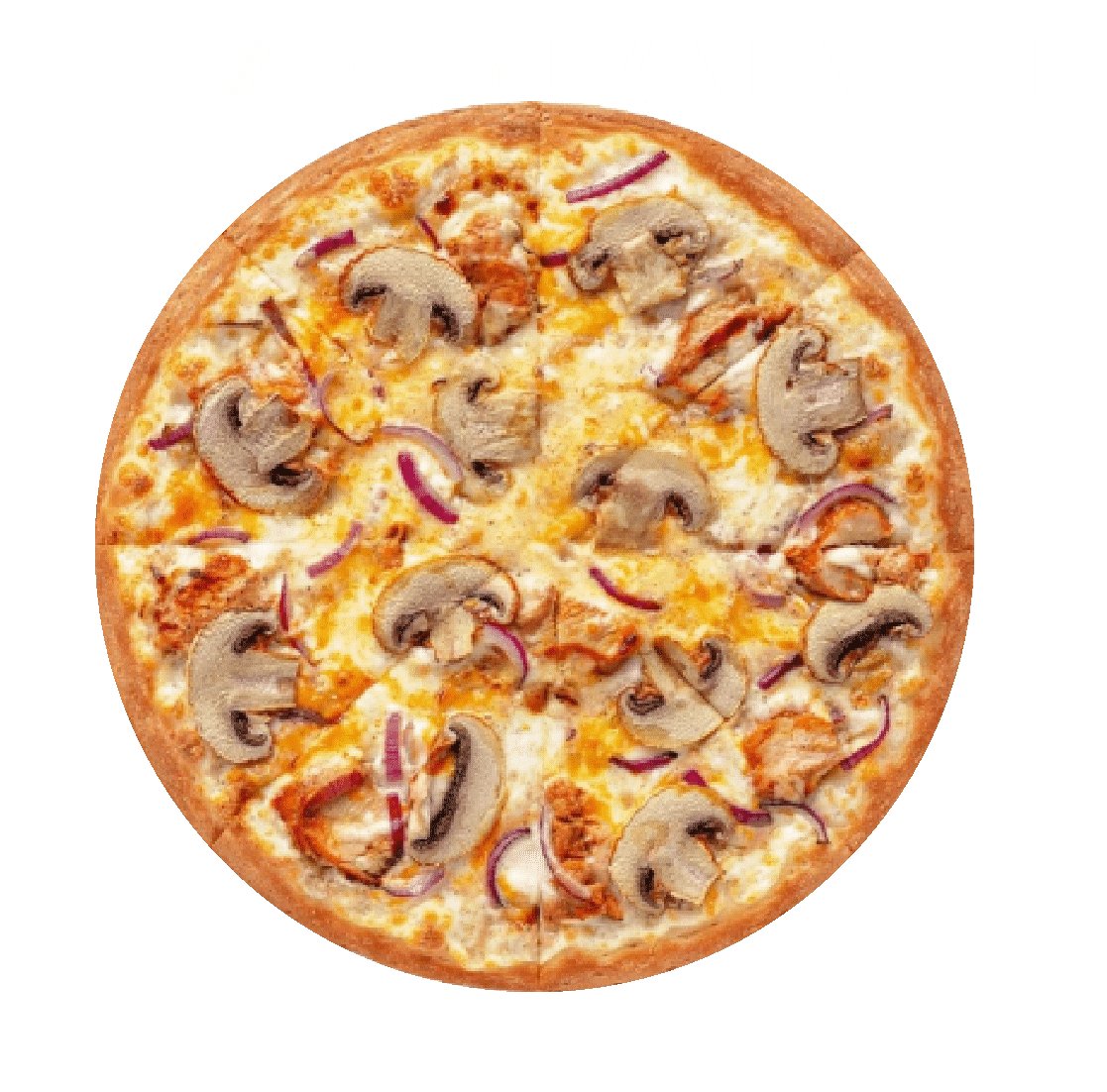 Сочное куриное филе, обжаренные шампиньоны в сливочном соусе, сыр моцарелла, фирменный соус альфредо
