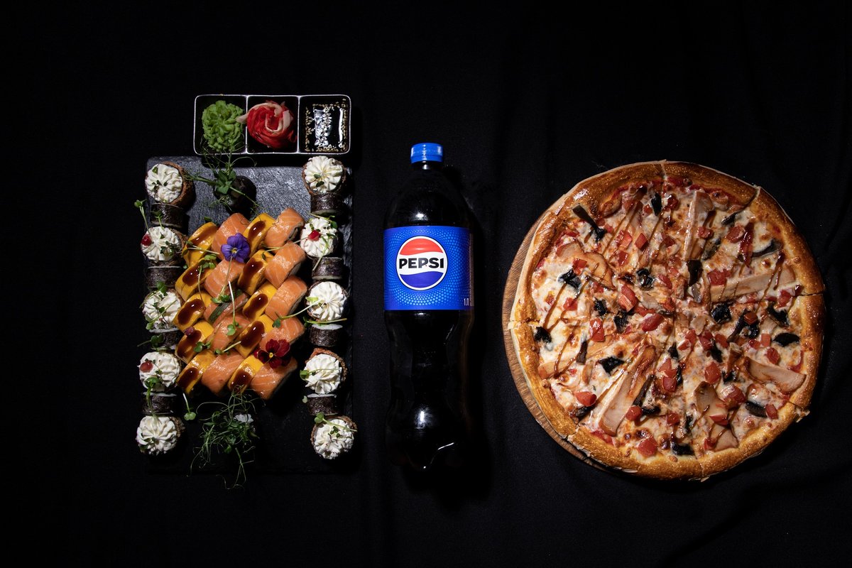 Филадельфия 10шт, техас 10шт, каппа маки 10шт, пицца пепперони, пепси 1л