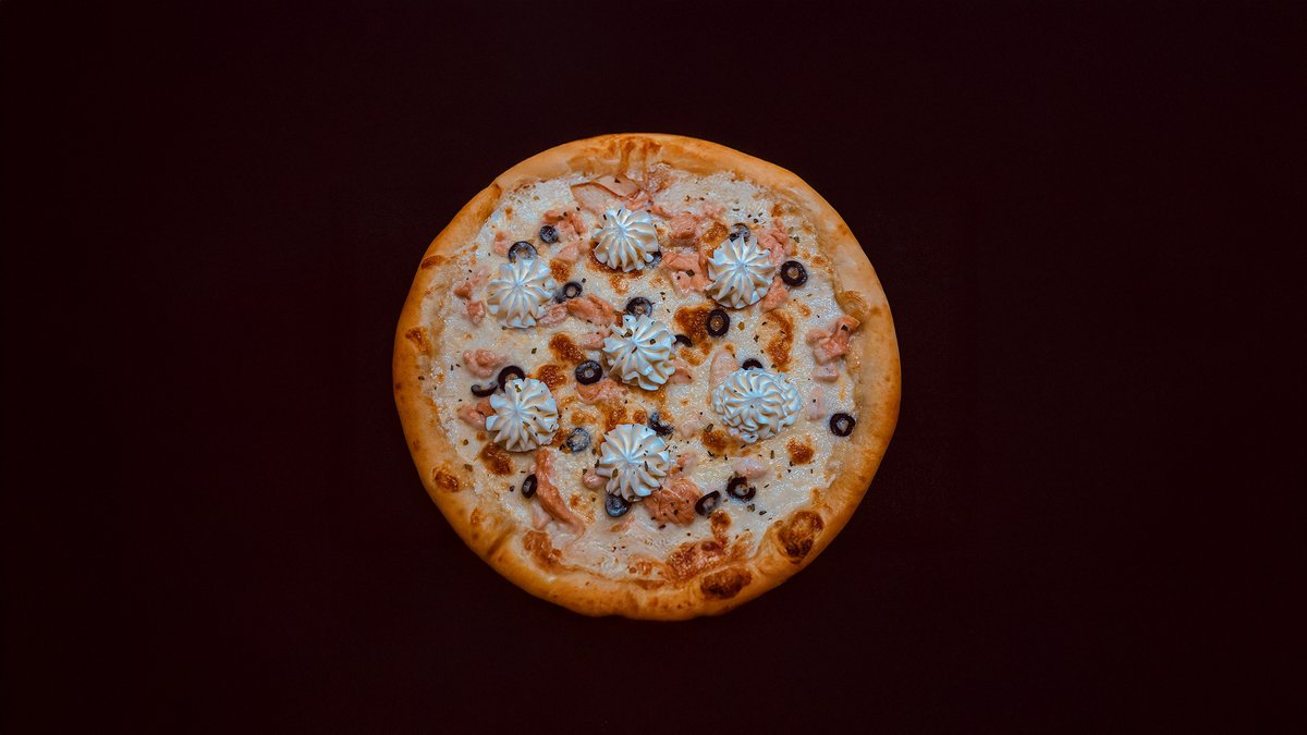 Нежный сливочный соус, сыр моцарелла, семга, творожный сыр Филадельфия, орегано.