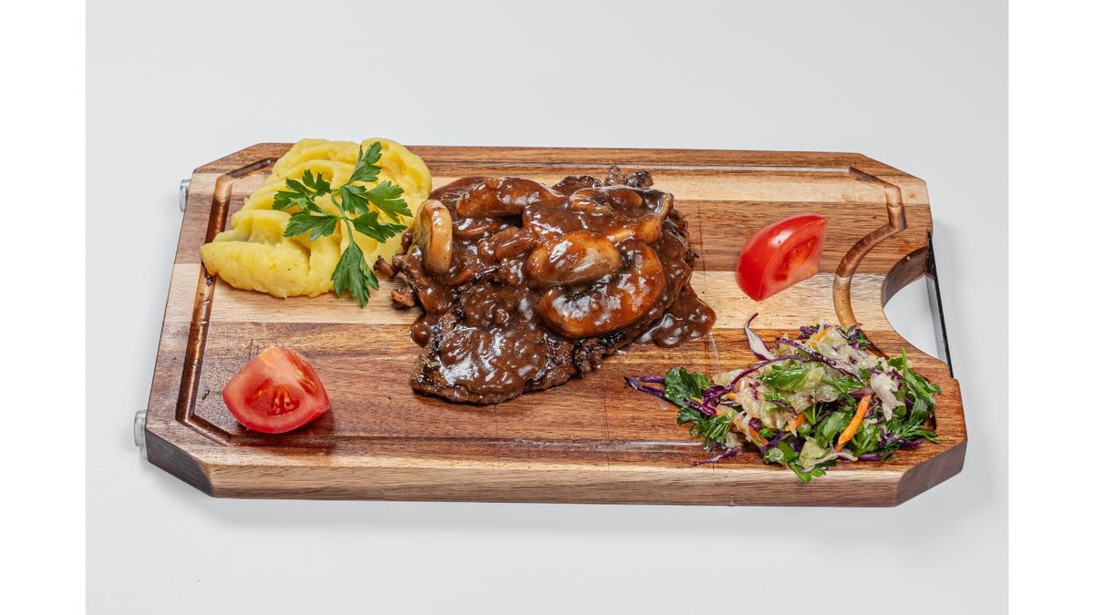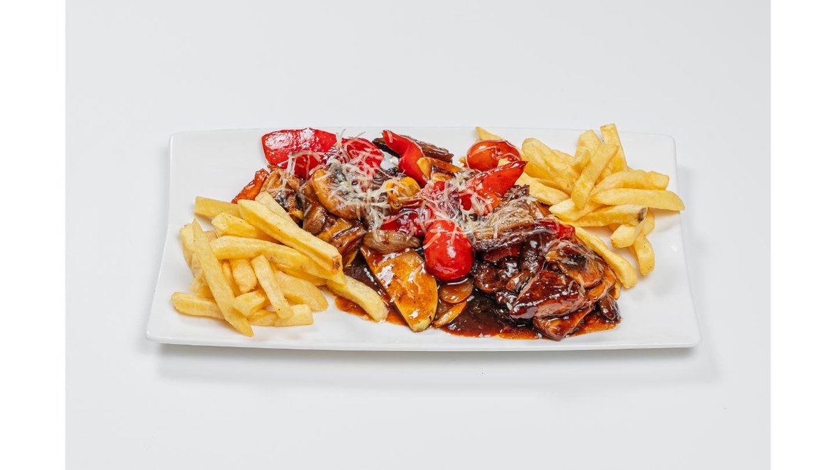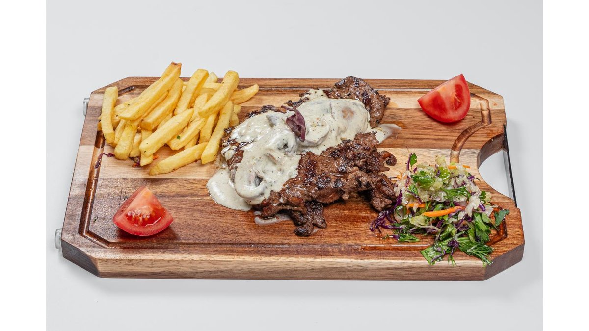 Beef cutlets, mushrooms, yufka dough, french fries, onion, sour cream