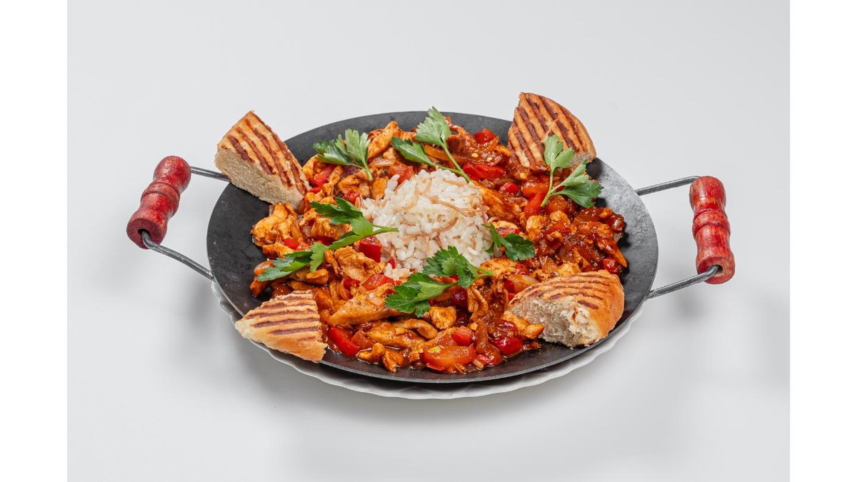 Chicken fillet, bell pepper, tomato, onion, hot sauce, parmesan cheese, sour cream, lavash