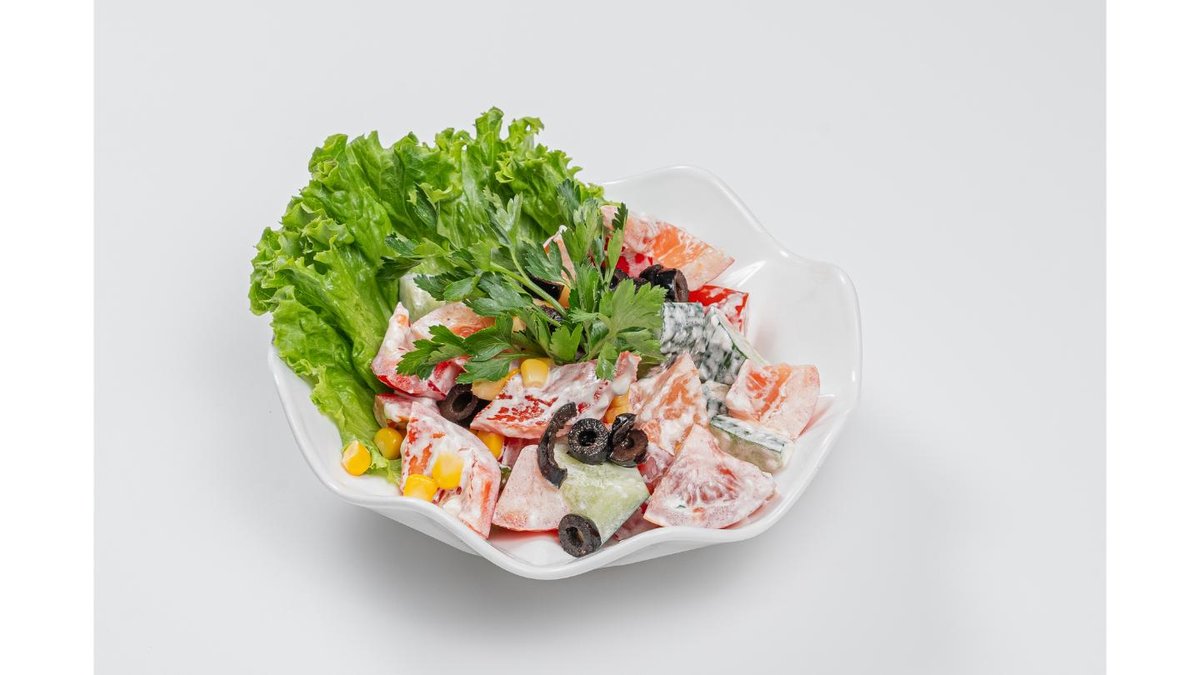 Fresh vegetables, corn, olives, herbs, mayonnaise