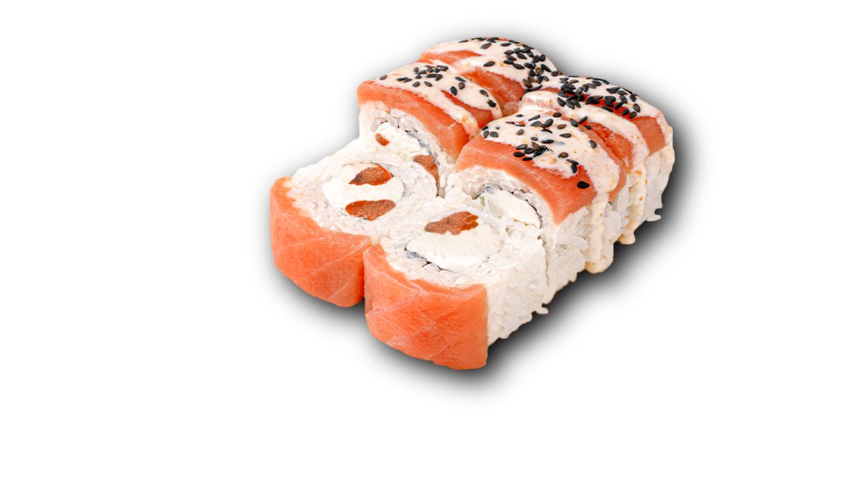 лосось. огурец. сыр сливочный. соус унаги. Кунжут