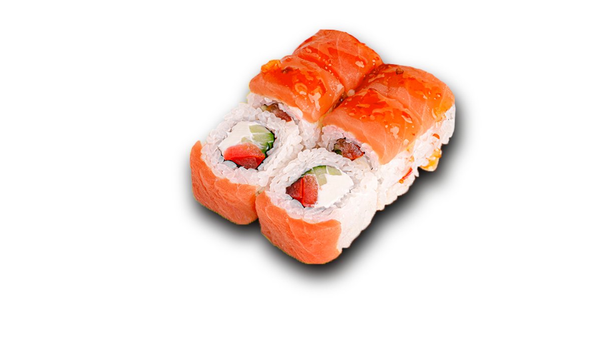 лосось. огурец. сыр сливочный. Масаго