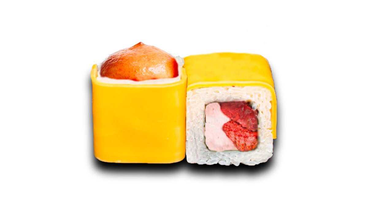 креветка. огурец. сыр сливочный. Масаго